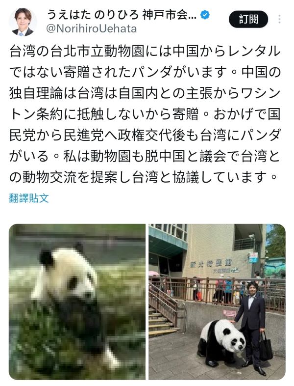 隨著旅日大貓熊即將全數返還中國,日本可能面臨近50年來首次「零貓熊」局面。日本神戶市議員上畠寬弘近日在X發文指出,已在市議會提案,建議日本動物園與台灣動物園進行「動物交換」,藉此引進大貓熊,引發中日及兩岸輿論關注。