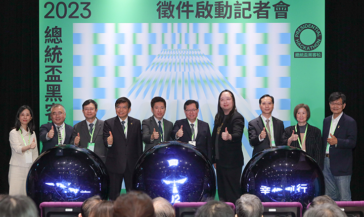 【愛傳媒報導】「2023總統盃黑客松徵件啟動記者會」於本(25)日假三創生活園區CLAPPER THEATER盛大舉辦,由行政院鄭文燦副院長、總統府張惇涵副秘書長、立法院鄭輝彬處長、司法院賴武志處長、考試院徐嘉臨參事、監察院汪林玲處長、數位發展部唐鳳部長、交通部王國材部長、陳正然無任所大使、國科會科技辦公室沈弘俊執行秘書共同宣布2023總統盃黑客松徵件正式啟動,號召全國黑客認領公民心願,提出解方,並由政府落實,共同為零碳轉型努力!