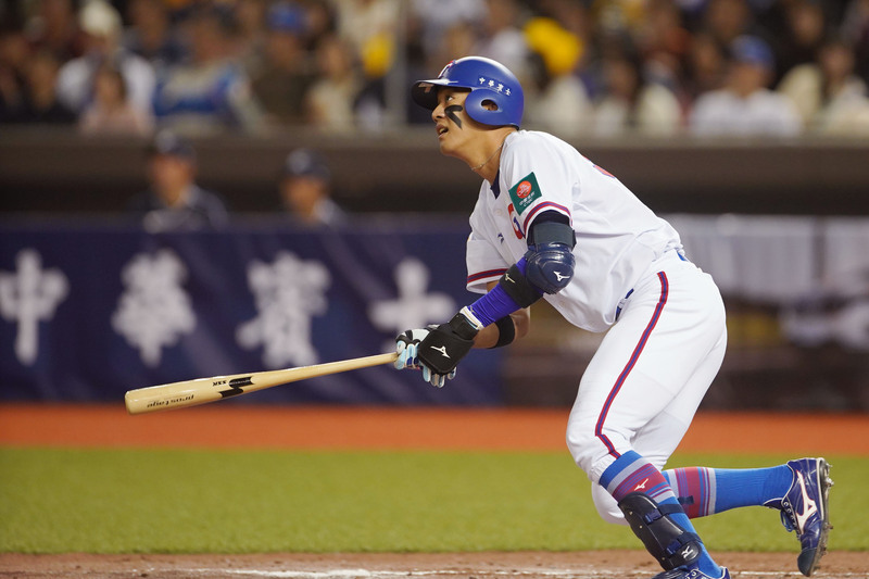中華隊隊長拿莫.伊漾三局下半敲出二壘安打站上得點圈,也是大巨蛋正式賽首支長打。圖/中央社