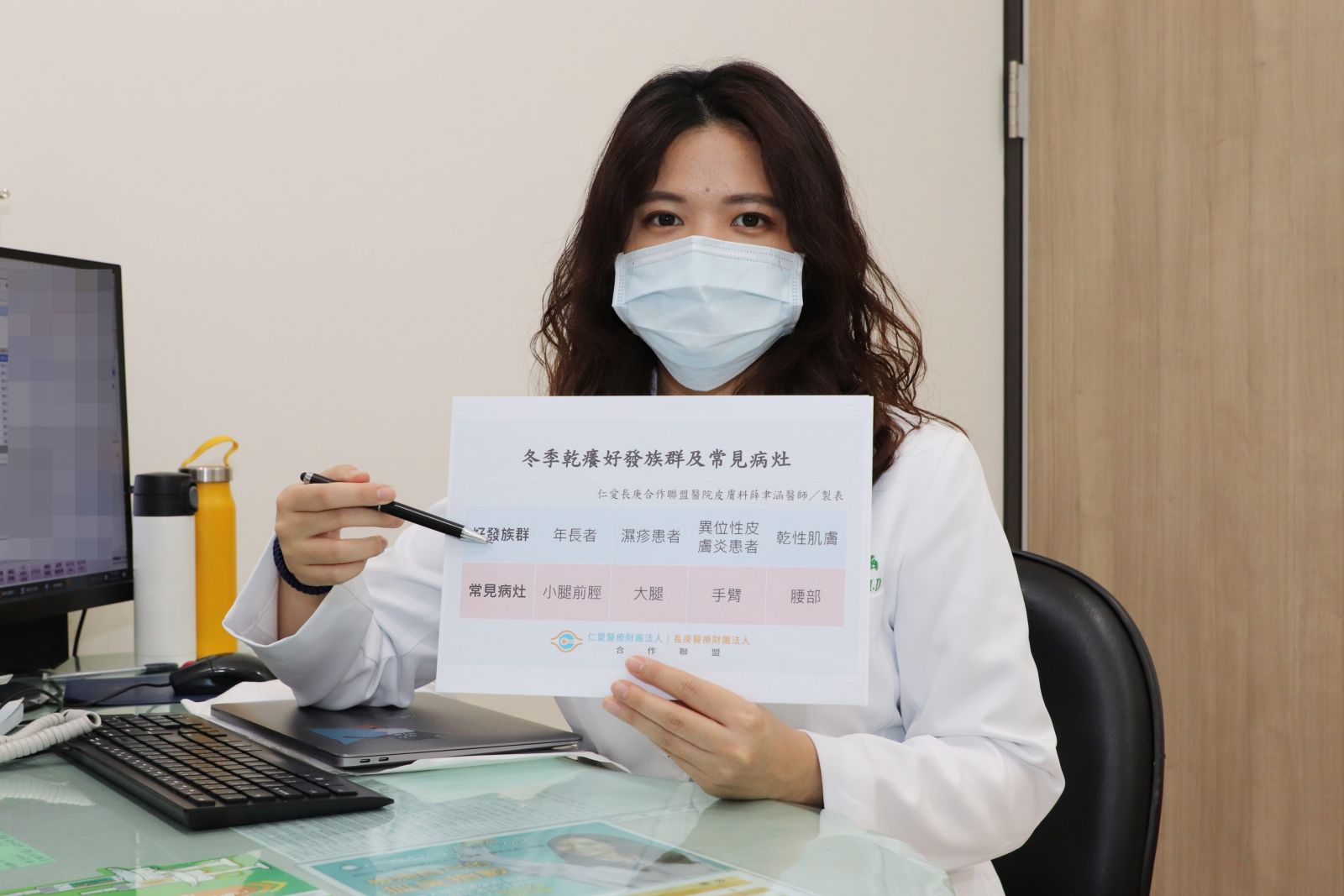 35歲上班族吳小姐,多年來每到冬季天氣變冷皮膚就發癢,甚至抓到手臂和小腿都紅腫破皮,不但穿衣服造成皮膚刺痛,晚上睡覺翻來覆去睡不好導致睡眠不足,而且白天上班沒精神而影響工作績效,懷疑是自己吃了不乾淨食物引起皮膚過敏,卻不見症狀改善,為此苦惱不已。經親友轉介大里仁愛醫院皮膚科薛聿涵醫師診斷發現,吳小姐剛好屬乾性膚質,每逢冬季皮膚容易乾癢,經過三到四週口服藥合併外用藥膏治療,搭配建議的皮膚保養,揮別冬季乾癢困擾,重拾健康又有活力的生活。