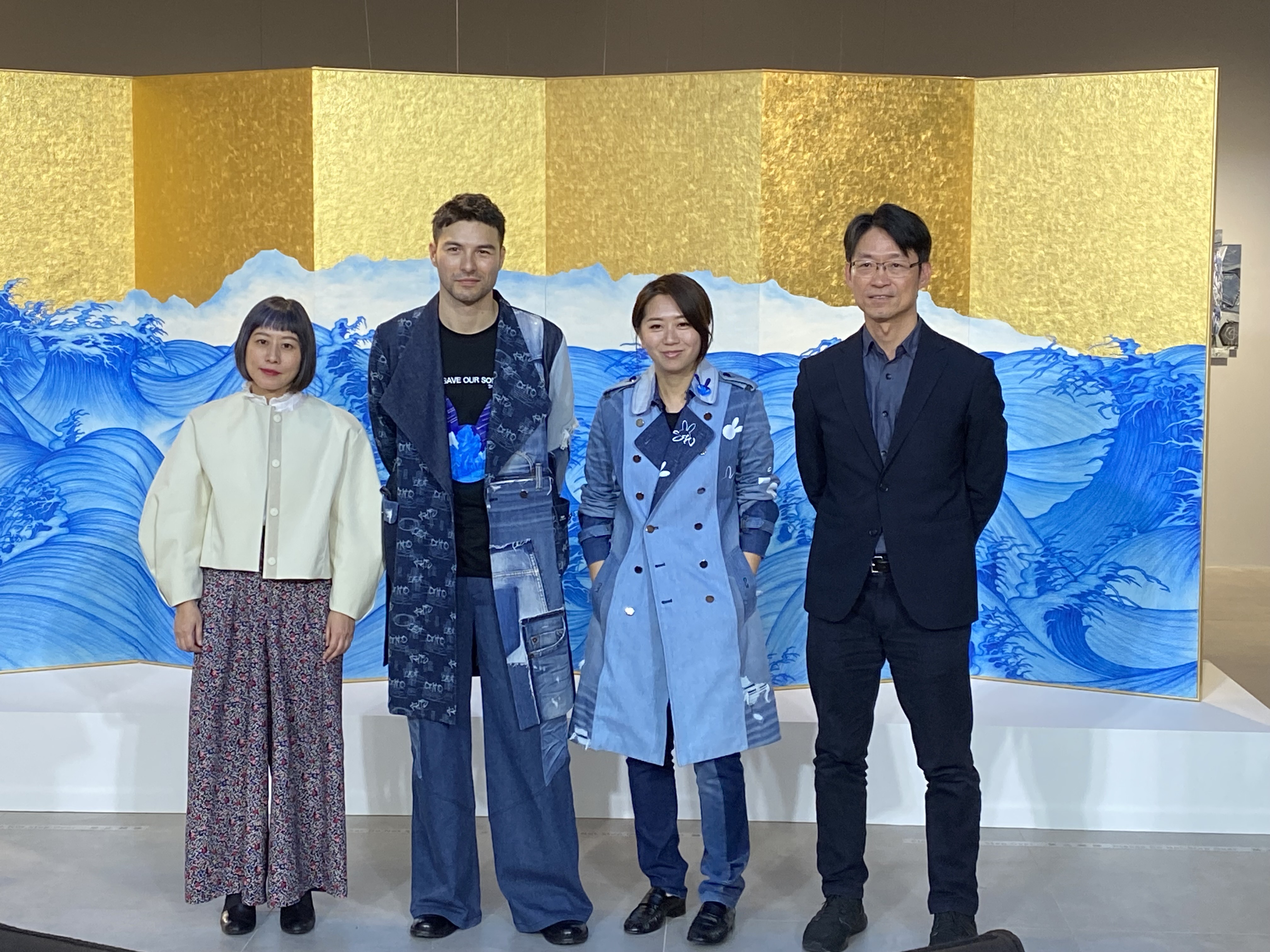 本次STORY WEAR與台灣極具代表性的當代藝術家姚瑞中合作,將姚瑞中以台灣為題的創作〈海峽風雲〉,與絹印版畫作品《乖乖-兔兔》成為本展系列商品標誌性圖騰,同時更是姚瑞中這幅以金箔製作、描繪台灣海峽數千年來潮起潮落歷史的六幅屏風畫作首度展出,