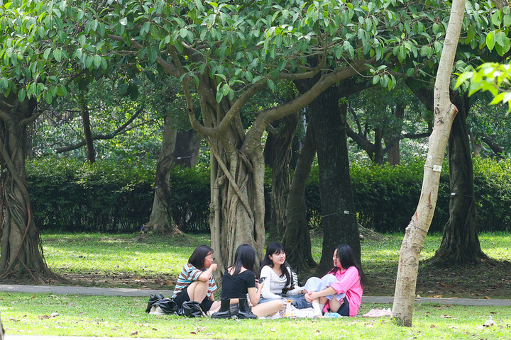 廣西「三月三」期間,傳說壯族歌仙劉三姐騎魚升天之地的廣西柳州市魚峰山下,歌聲不停,已成為山歌經濟的興起地。大批山歌愛好者聚集山腳下,架起手機直播對唱山歌,引來線上、線下民眾圍觀。