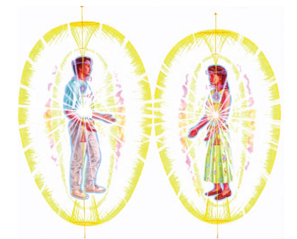 人與人之間的來往,除了肢體接觸外,外層的能量場會隨著距離不同而有互動;比如談戀愛、聊天、討論、談判、爭吵等,能量場會隨著個人的情緒及思惟,而與對方不斷互動。
