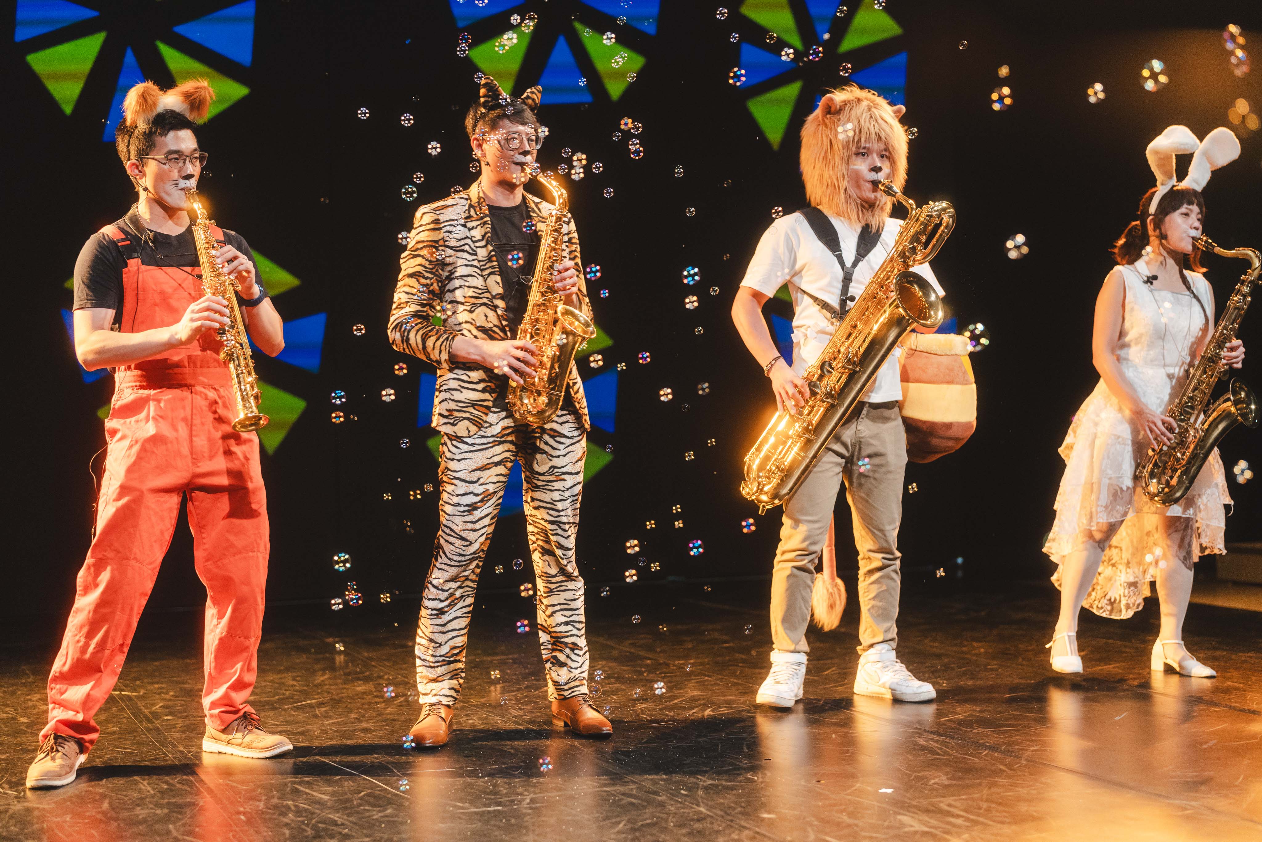 《薩克歷險記》是一部結合薩克斯風演奏與戲劇的作品,故事講述了4隻森林動物——狐狸、老虎、兔子和獅子,在探尋自我真實聲音的過程中所經歷的奇幻冒險。2023年此劇在華山親子表藝節首演時,3天6場的演出場場爆滿,隨後於台北誠品表演廳加演,更是在預售期間即搶購一空。