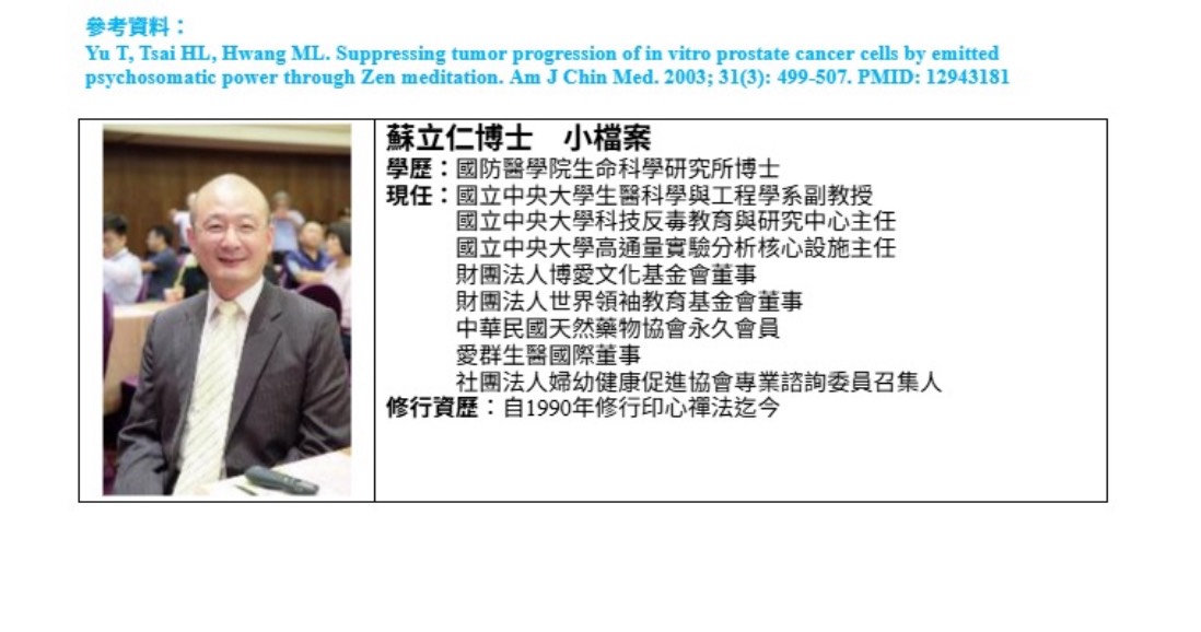 他們將前列腺癌的癌細胞分為實驗組與對照組,實驗組做體外的培養,並請悟覺妙天禪師進行超生命力加持,而對照組則完全不做任何處理。