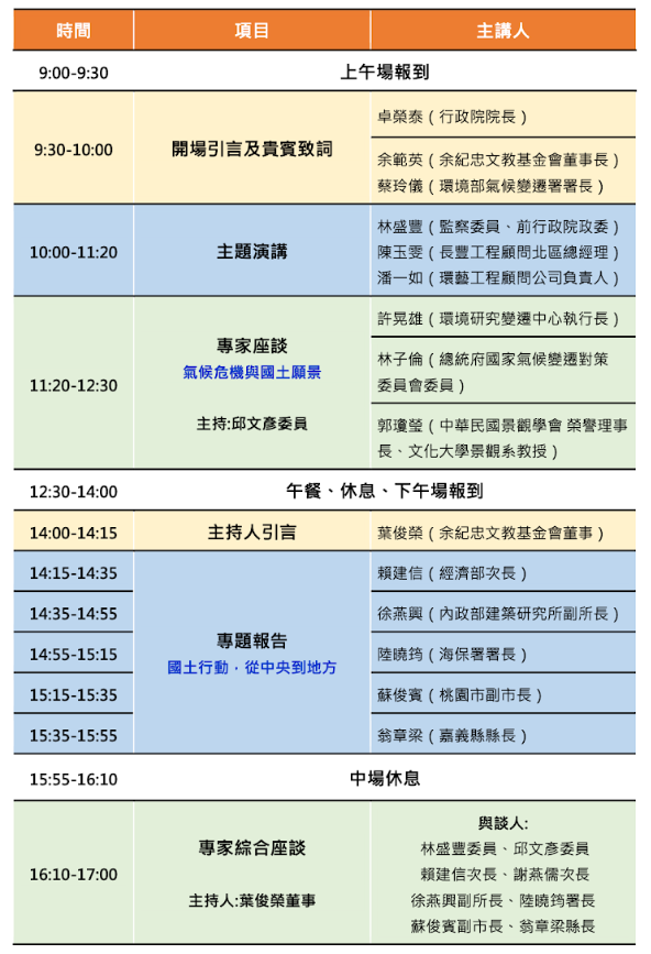 余紀忠文教基金會以「極端氣候下的國土規劃挑戰」為主題,與環境部氣候變遷署合作,希能在氣候變遷帶來的實質衝擊的當下,探討國土規劃、氣候調適行動之間,中央部會與地方如何協作與平衡。希望透過深度對話,為永續與韌性的國土規劃,建立更具前瞻性的思維。